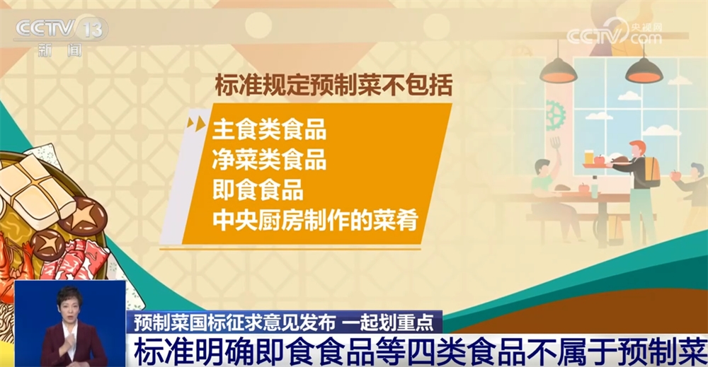 中国标准化研究院农业与生物技术研究所研究员 云振宇:本标准适用于预制菜的生产和经营,不适用于主食类食品、净菜类食品、即食类食品、中央厨房制作的菜肴,主要考虑是与六部门印发的《关于加强预制菜食品安全监管 促进产业高水平发展的通知》和强制性国家标准《食品安全国家标准 预制菜》关于预制菜的定义和适合使用的范围保持一致。