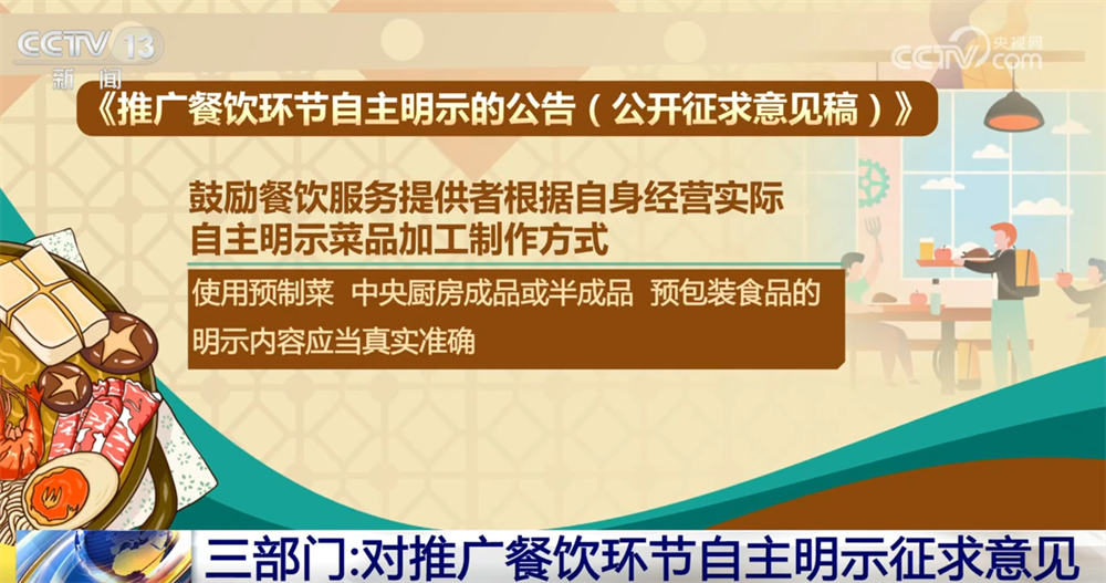 国务院食安办、市场监管总局、商务部2月6日发布《推广餐饮环节自主明示的公告(公开征求意见稿)》。