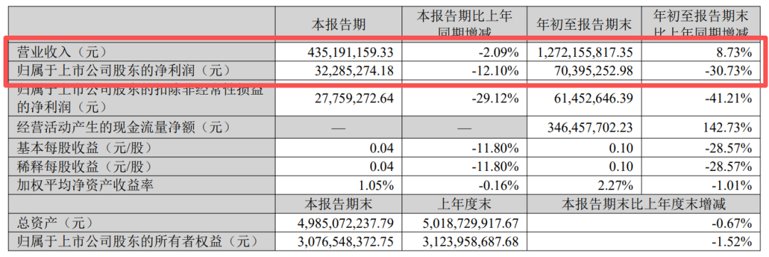 今年上半年,莱茵生物实现盈利收入8.37亿元,同比增长15.37%;实现归母净利润3811万元,同比大跌41.27%。此外,今年前三季度,其实现盈利收入12.72亿元,同比增长8.73%;实现归母净利润7039.53万元,同比下滑30.73%。